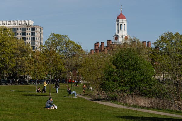 The Harvard campus in Cambridge, Mass. One instructor there said he had integrated a custom chatbot into a computer programming class. Credit…Sophie Park for The New York Times